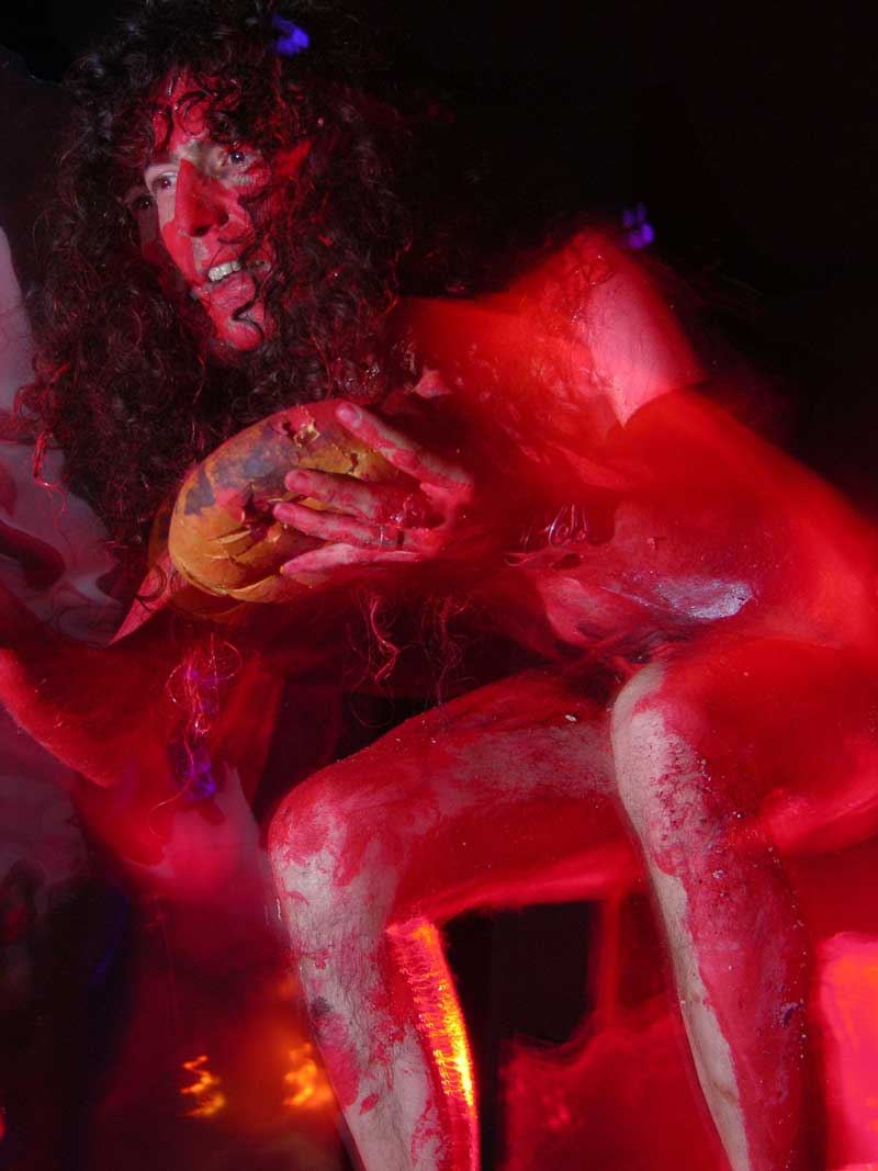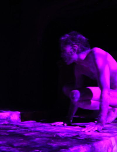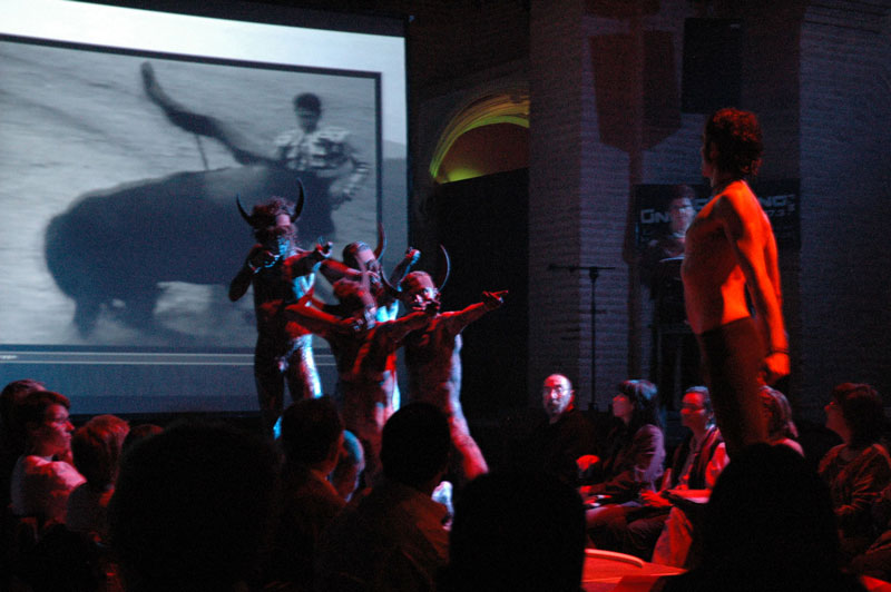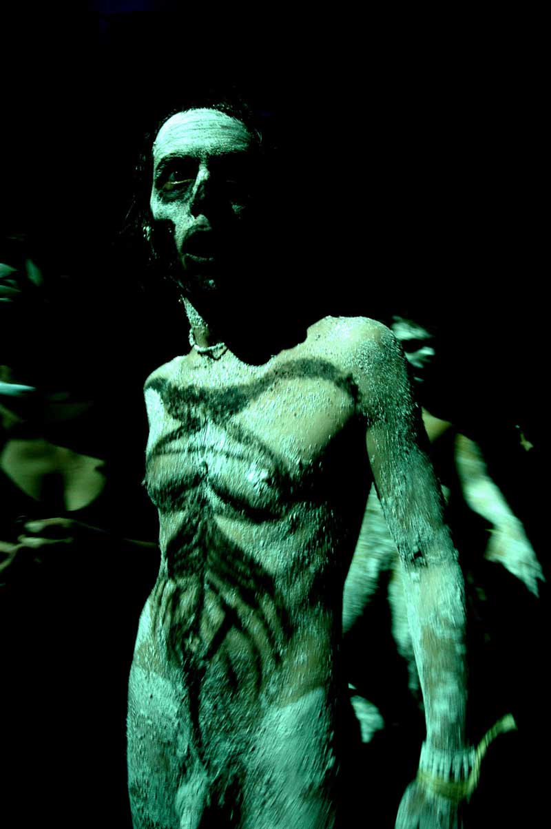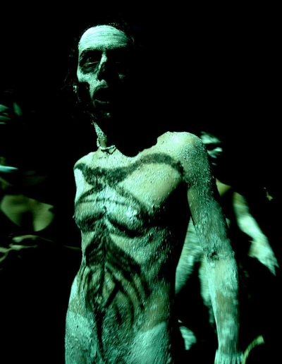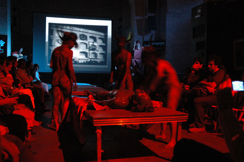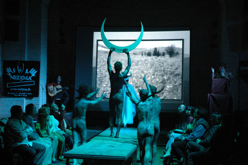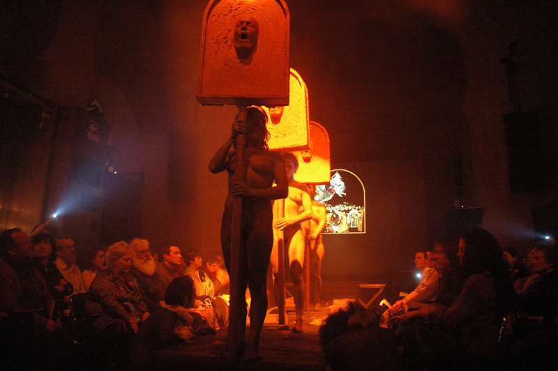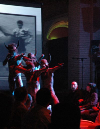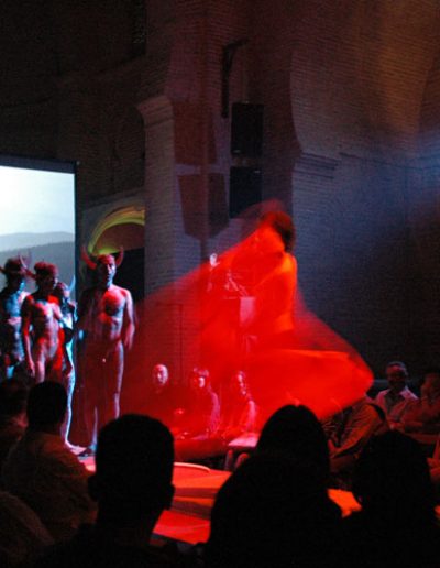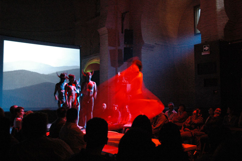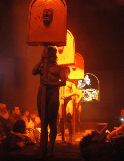 Entre el gesto primitivo y el ademán contemporáneo; del grito frente al fuego, o ante la sombra, al conjuro de derechos humanos o la denuncia de los abusos de las mafias; por la inmediatez y la presencialidad, por la esencia del arte como medio en vez de como fin en sí mismo: Prometeo versus Narcios, la verdad frente a la apariencia; la desnudez del chamán frente a la hoguera, de Francisco de Asis frente al Papa de Roma, del pueblo frente al poder.