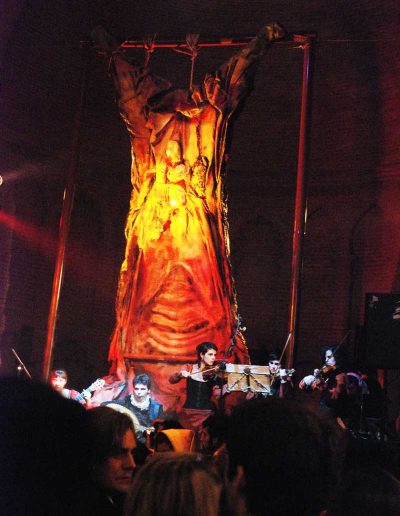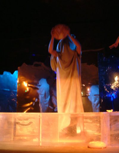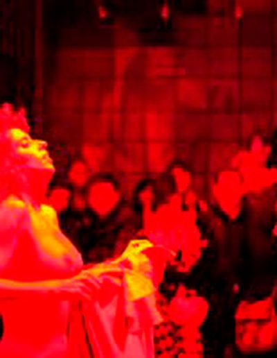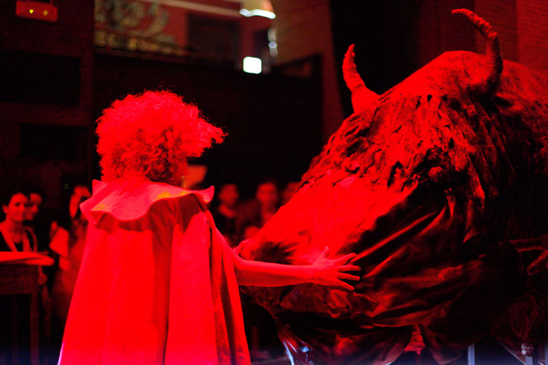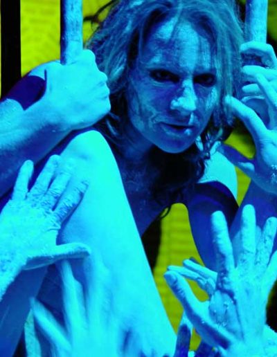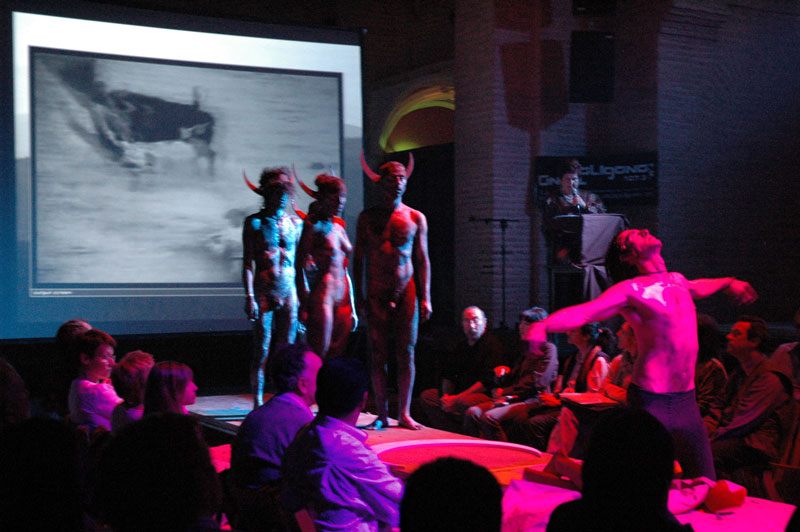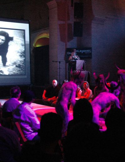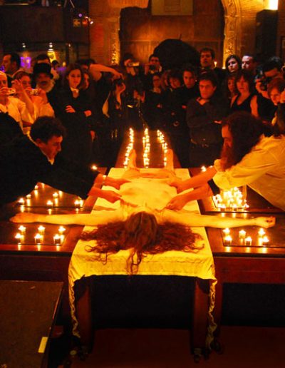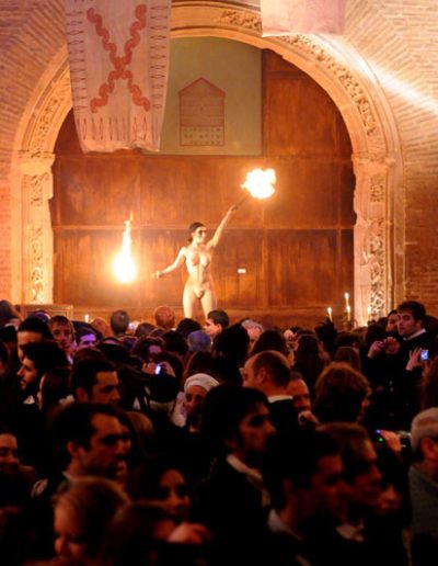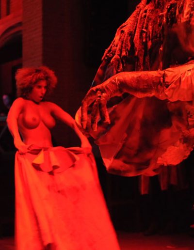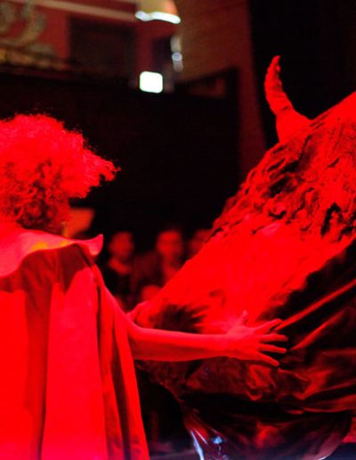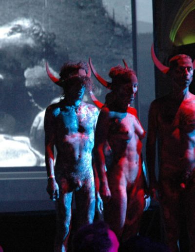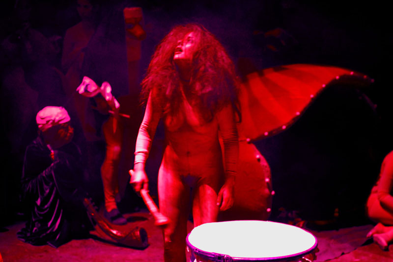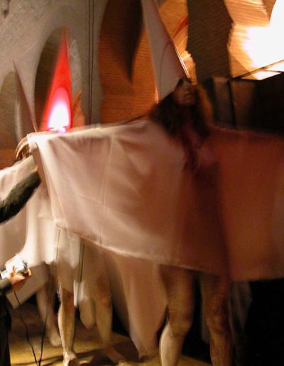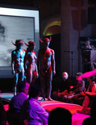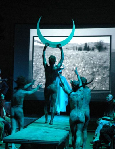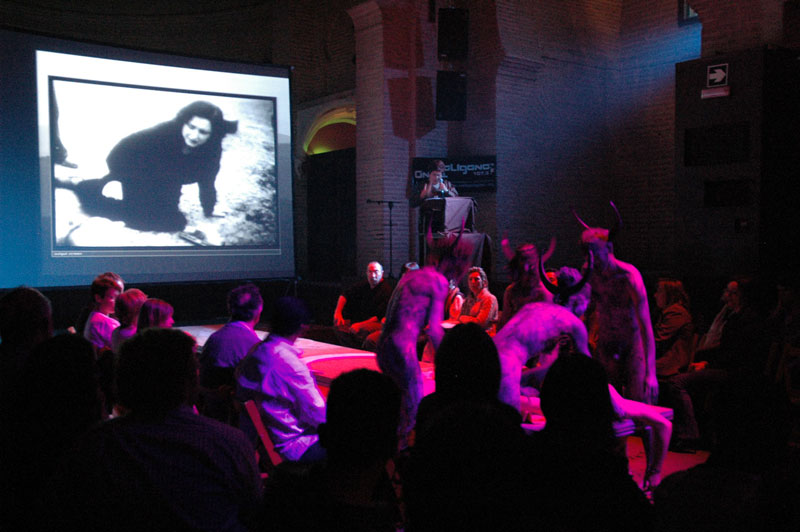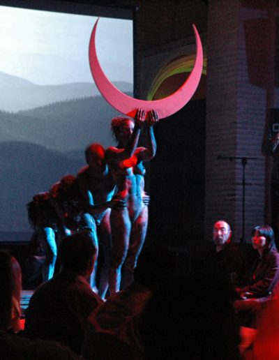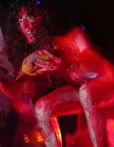 Entre el gesto primitivo y el ademán contemporáneo; del grito frente al fuego, o ante la sombra, al conjuro de derechos humanos o la denuncia de los abusos de las mafias; por la inmediatez y la presencialidad, por la esencia del arte como medio en vez de como fin en sí mismo: Prometeo versus Narcios, la verdad frente a la apariencia; la desnudez del chamán frente a la hoguera, de Francisco de Asis frente al Papa de Roma, del pueblo frente al poder.